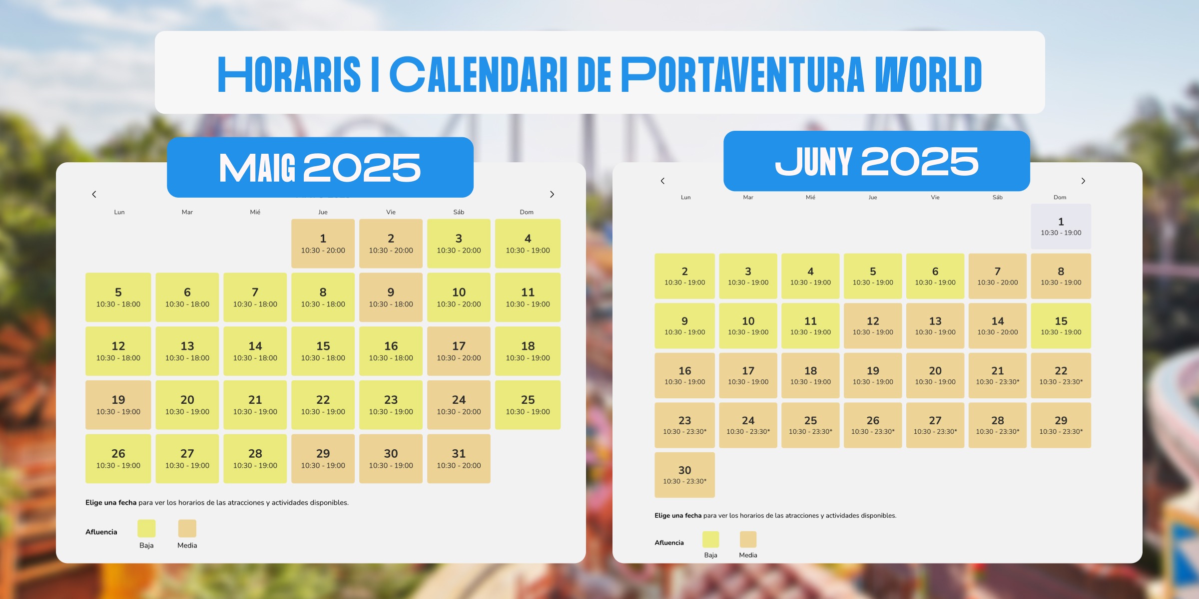Calendari d’afluència a PortAventura Park mes a mes