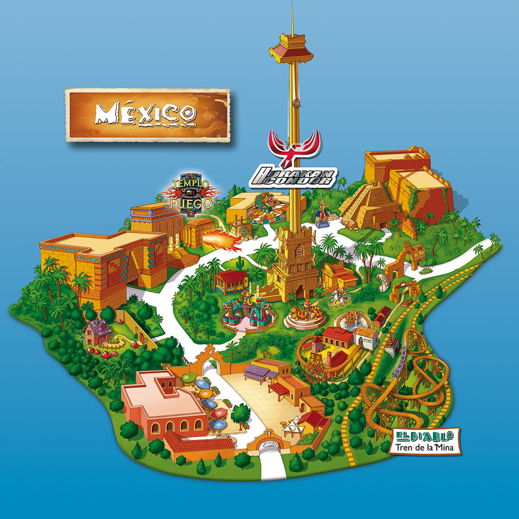 Get carried away by the impressive attractions in PortAventura’s Park area of México, accompanied by the rhythm of its famous mariachis. Connect with Mexican culture and be part of it as you cross over into this world.