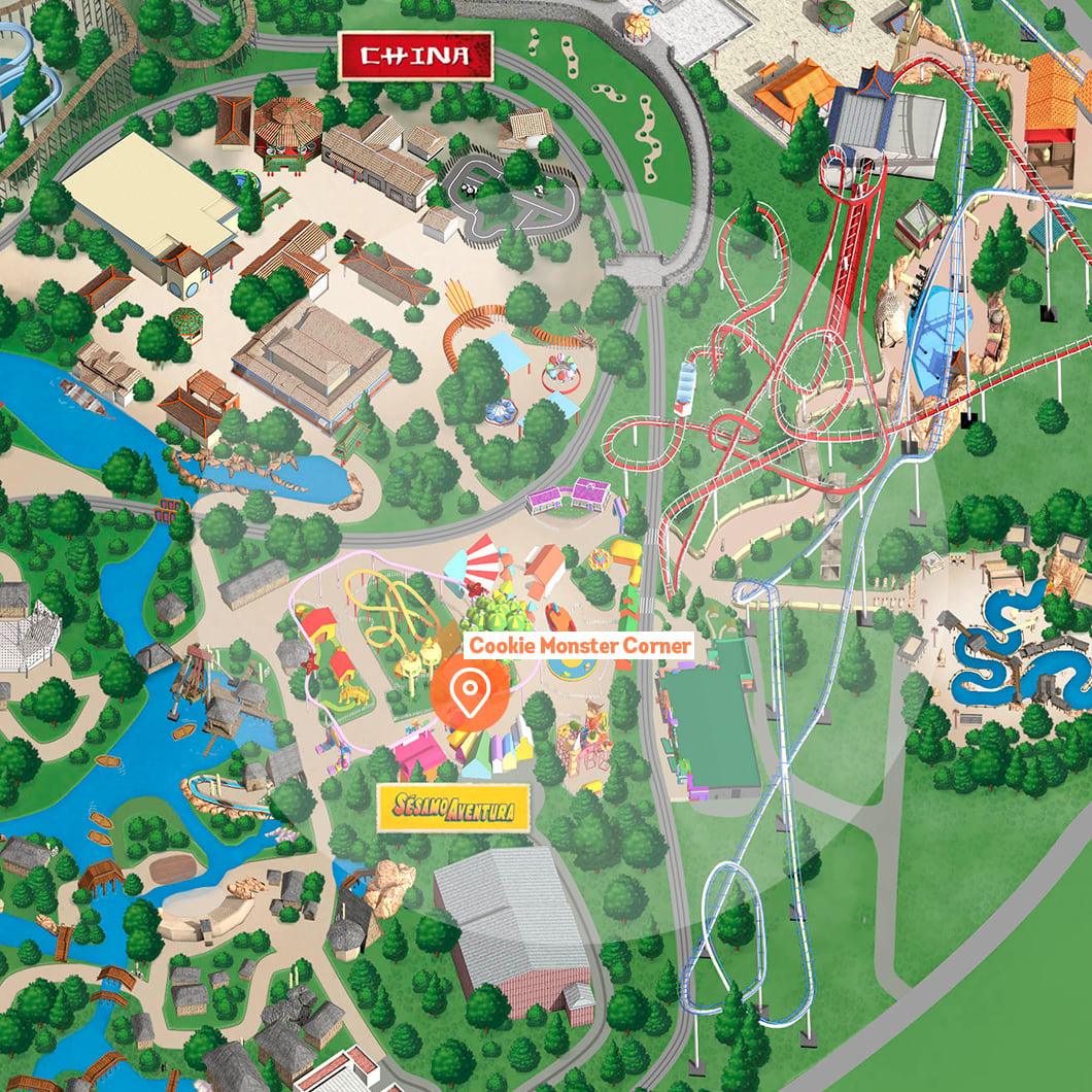 The SésamoAventura characters have taken into account that at some point you will want to stop to rest and have a drink or something to eat. And you can do this at Cookie Monster Corner, where you will find ice creams, soft drinks, coffees, and slushies. When you're ready, continue on your way!
