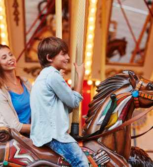 The famous merry-go-round of PortAventura's Far West is one of the park's most popular children's attractions and is designed for little ones and adults alike to enjoy the fun together.