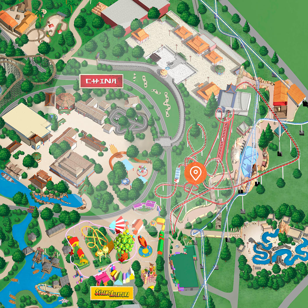 The impressive appearance of this ride has made it a symbol of PortAventura and of every theme park in Spain, as nothing of its kind had ever been seen before the park opened in 1995. Come and try it for yourself!