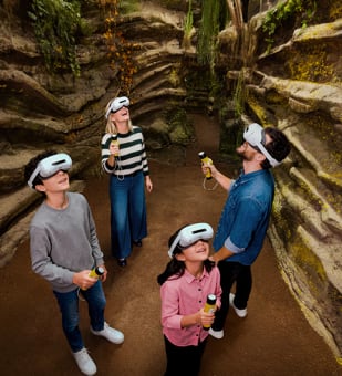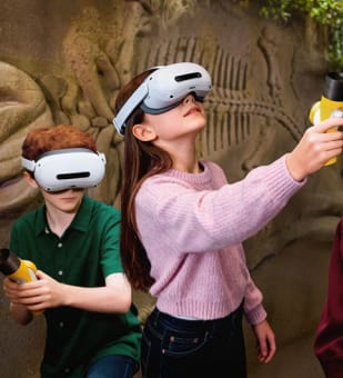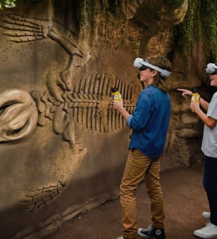 Put on your mixed-reality headset and join this expedition where the real and the digital intertwine. Walk through themed environments, observe prehistoric creatures, and feel every bubble, light, and sound as you immerse yourself in a never-before-seen Jurassic world.