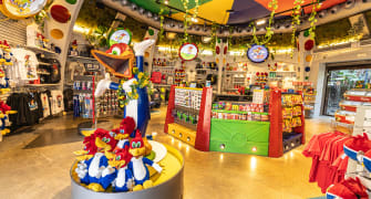 Distributed throughout the theme areas, in the park's shops you can find souvenirs suitable for all ages, so that everyone can take home a reminder of their experience. Soft toys, mugs, keyrings, clothing and accessories, electronic items... These are just some of the items that are waiting to be discovered. Don't leave without yours!