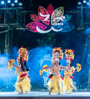 There inhabitants light their torches and begin to dance. Be charmed by their tribal rituals carried out to the rhythm of music and percussion beats that they create, and feel just like you're in a Polynesian paradise whilst native warriors perform a unique display of fire juggling and other tricks.