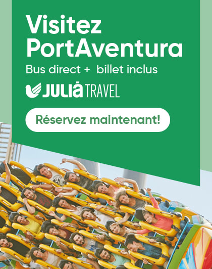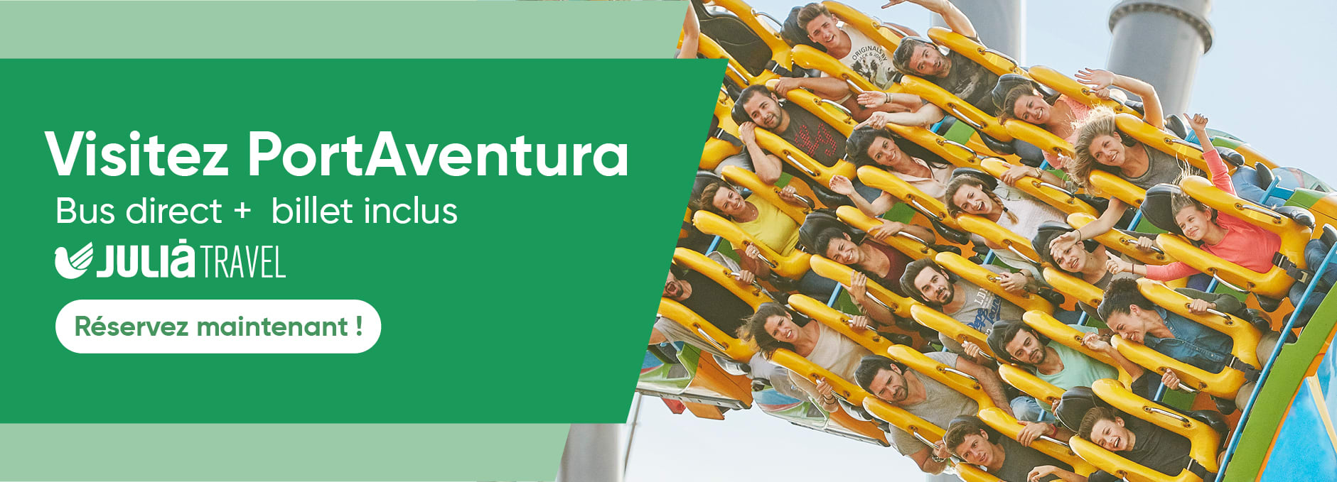 Comprend : entrée pour PortAventura Park + trajet aller-retour en bus climatisé au départ de Tossa, Lloret de Mar, Blanes, Malgrat, Santa Susana, Pineda de Mar ou Calella. L’entrée pour les parcs Caribe Aquatic Park et Ferrari Land n’est pas comprise.